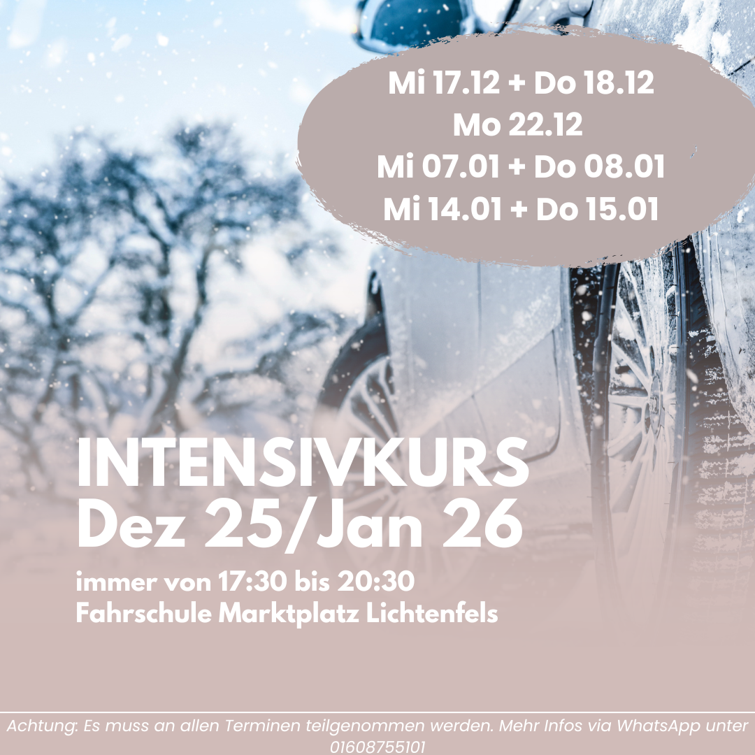 Durch den Intensivkurs entstehen dir keine Mehrkosten. Fordere Dir gerne eine Preisübersicht an!